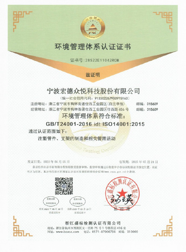 环境管理体系认证证书